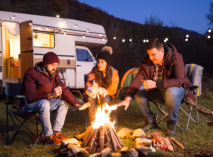 6 летних глэмпов на берегу озера.
